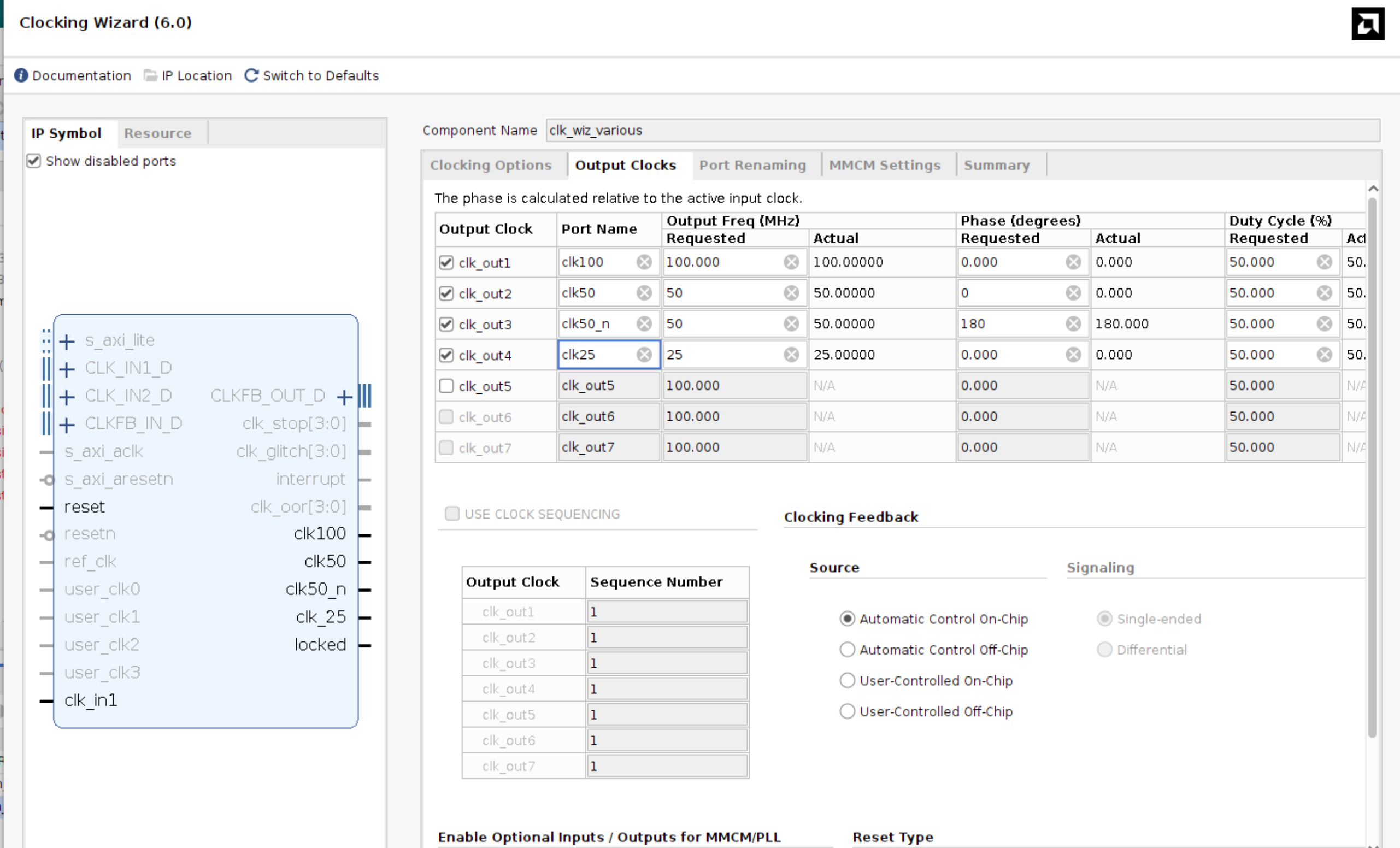 In this method, we will use Vivado to use a MMCM (Mixed-Mode Clock Manager) to generate a custom clock signal from the default 100 MHz input clock.