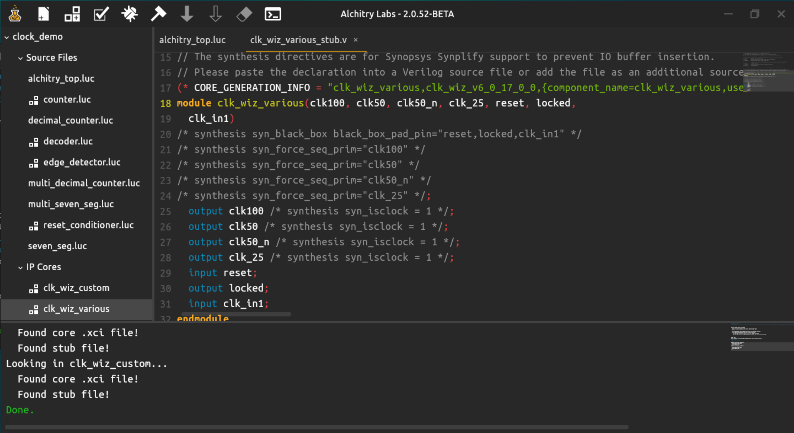 Once done, you can close Vivado. When you return to Alchitry Labs, you will see your new clock created: