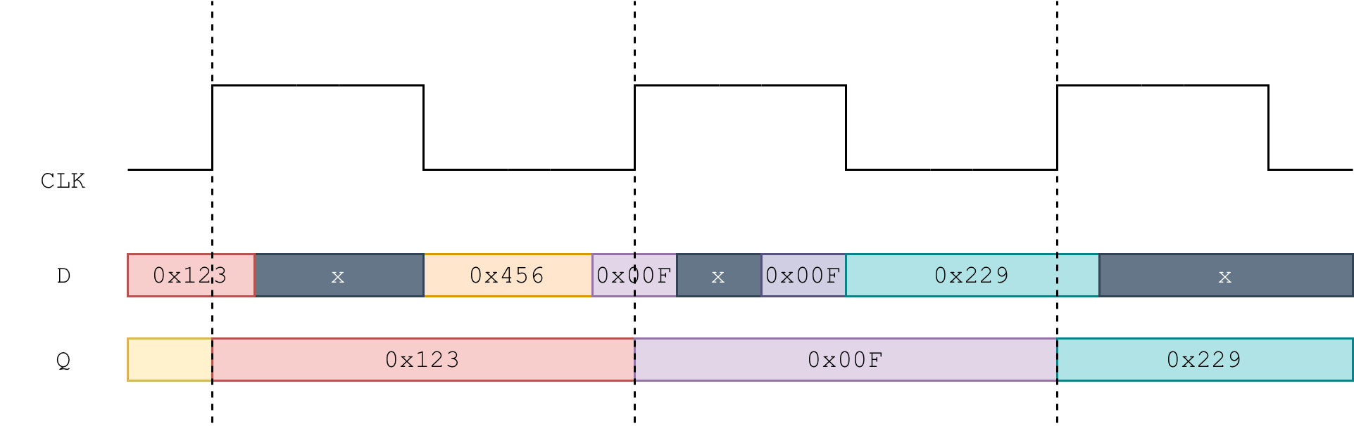 It does not simply “store” a value, but it enforces a strict boundary between one moment in time and the next. Between clock edges, the output of a DFF is GUARANTEED to be stable, even if the surrounding combinational logic is still changing.