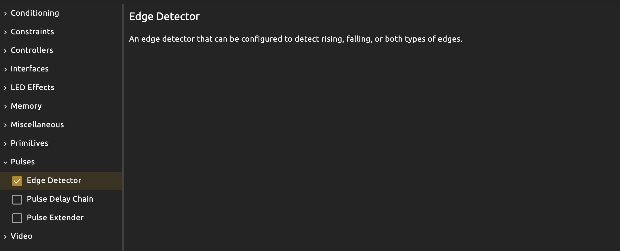 Edge Detector: This module will detect when there is an edge on 'in' and will
