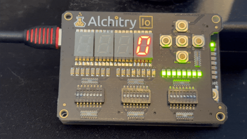 io_led[0]shows the current test case valuea,io_led[1]shows the current test caseb, andio_led[2]shows the computed sums.- The tester steps through at least 8 different