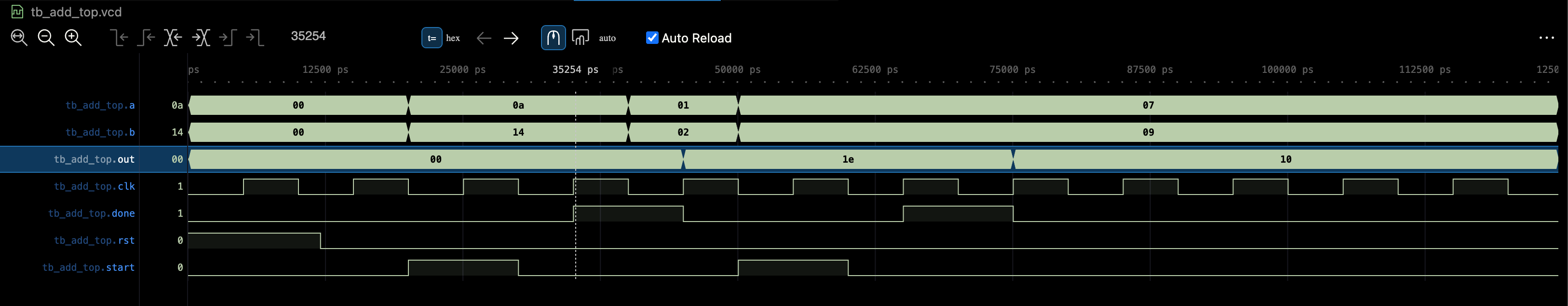 aandbinputs toregistered_rca_enare taken fromA_INPUTS[index.q]andB_INPUTS[index.q]. - The adder computes