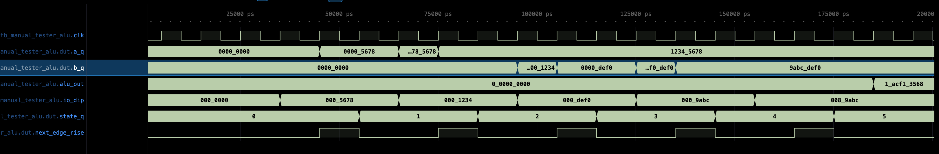 // No self-checks. Just step through: store A low/high, store B low/high, store alufn, compute, reset.