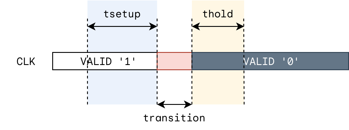 If you’re interested to know why the dynamic discipline has those specific constraints (\(T_{setup}\) and \(T_{hold}\)), read this section. If this is too much for you, you can skip it. You won’t exactly lose in exam if you skip it, just that your knowledge wont be whole.