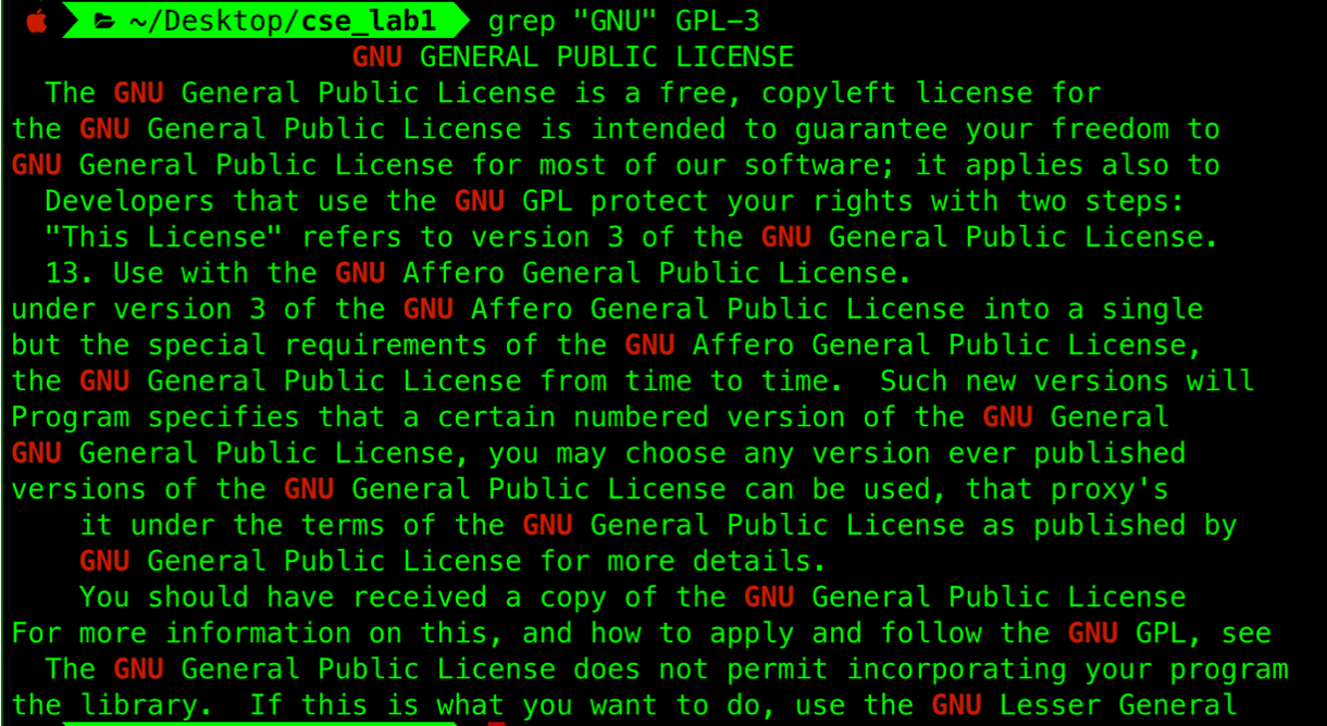 grep “GNU” GPL-3prints every line containing “GNU” word. - Some shells don’t require the quotation marks for single-word search, so you can try