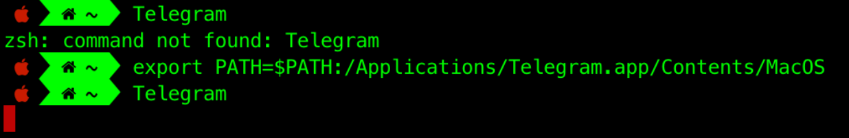 For example, you can add the binary of the Telegram app onto the $PATH using the command export, and now you can simply execute it from anywhere (a new Telegram window is opened on the second Telegram command):