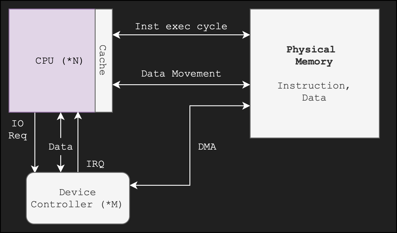 Note that “DMA” means direct memory access from the device controller onto the RAM1 (screenshot taken from SGG book).