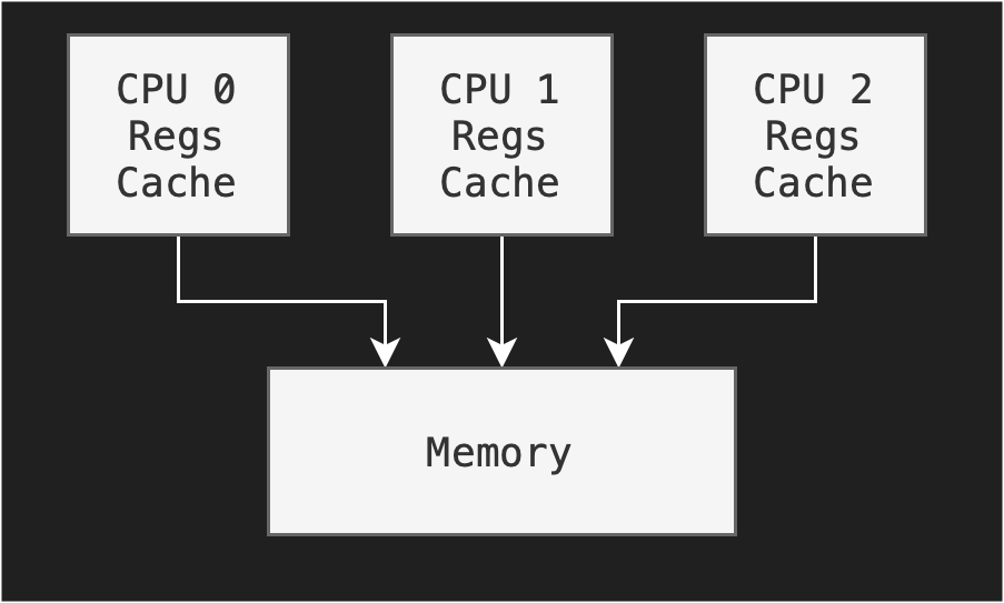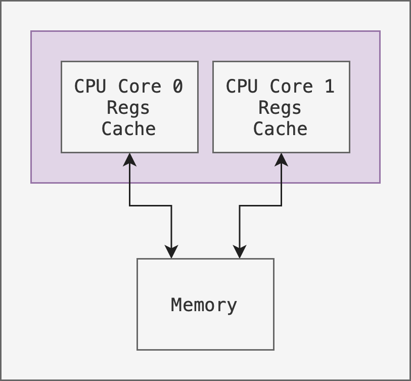 Another example of a symmetric architecture is to have multiple cores on the same chip as shown in the figure below: