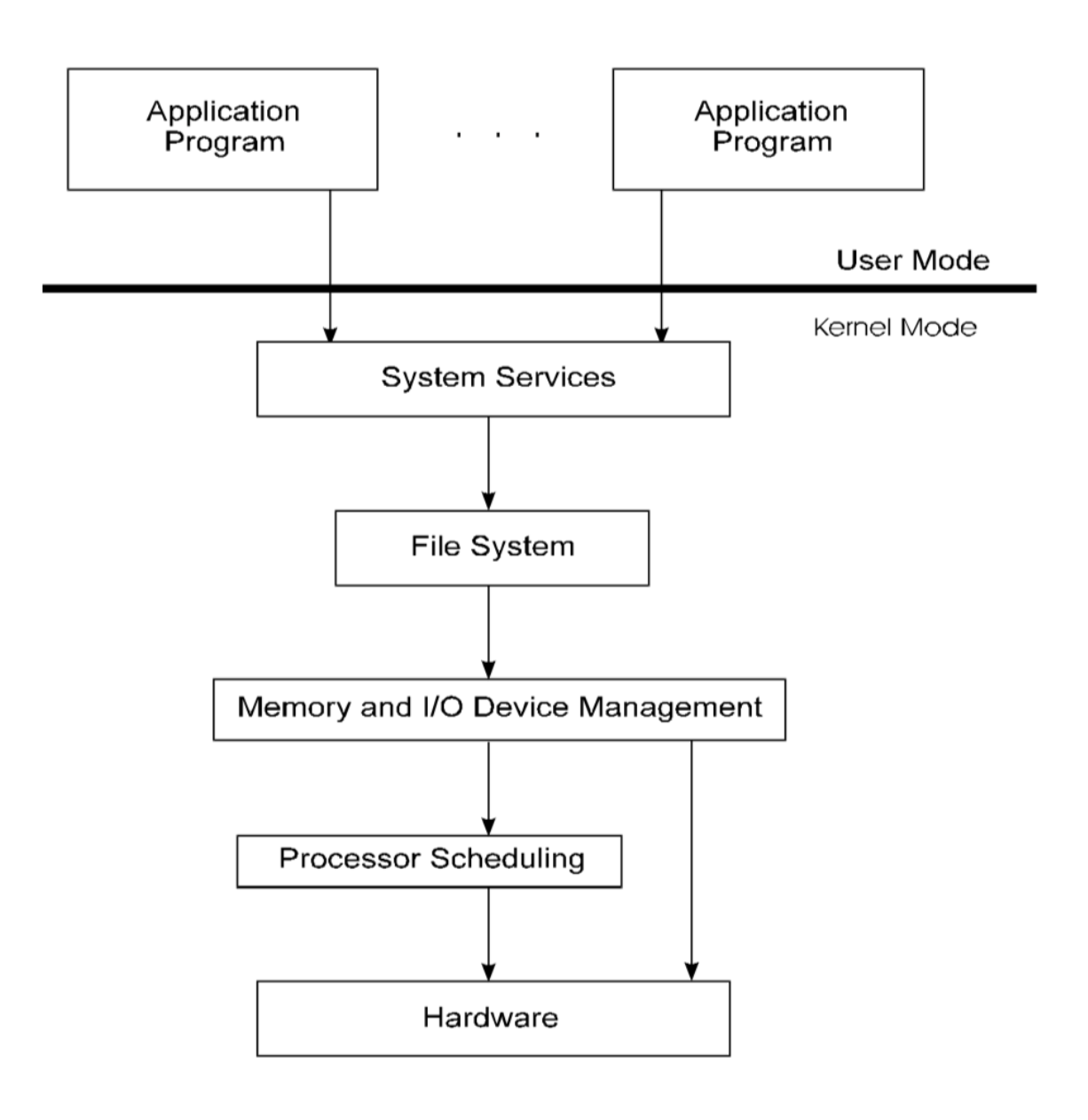 The early UNIX OS was also simple in its form as shown below. In a way, it is layered to a minimal extent with very simple structuring.