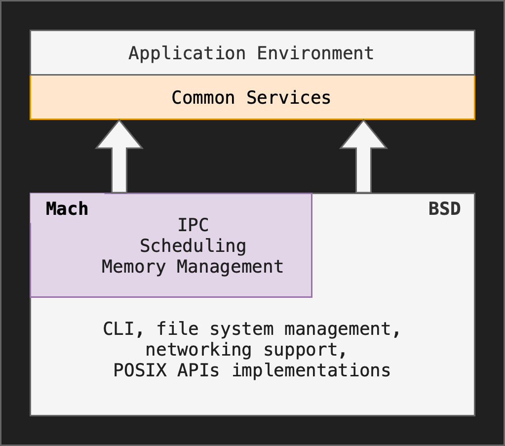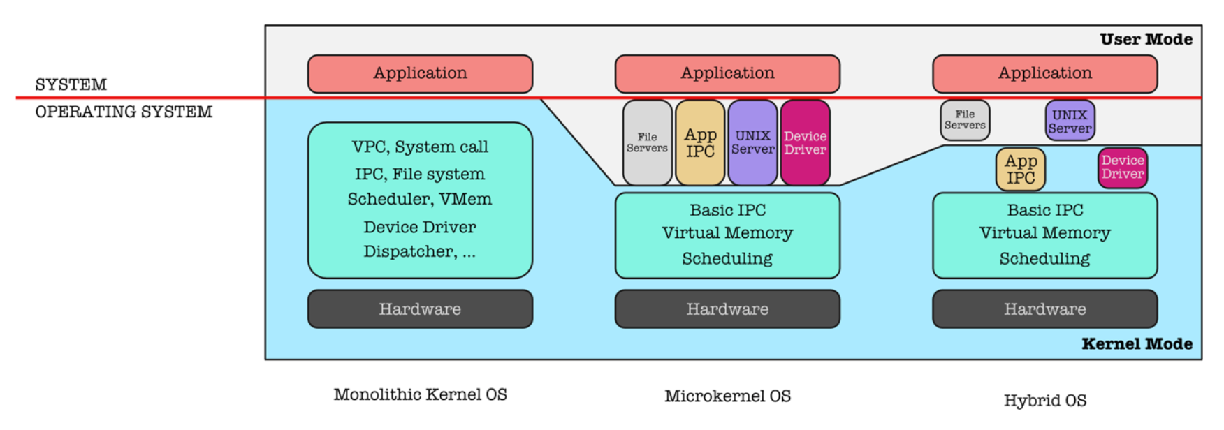 Example: macOS is partly based on microkernel + monolithic approach (image taken from SGG):