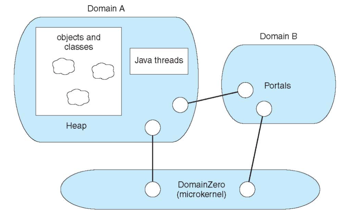 - Domain zero is written in C and assembly language; all other domains are written entirely in Java.