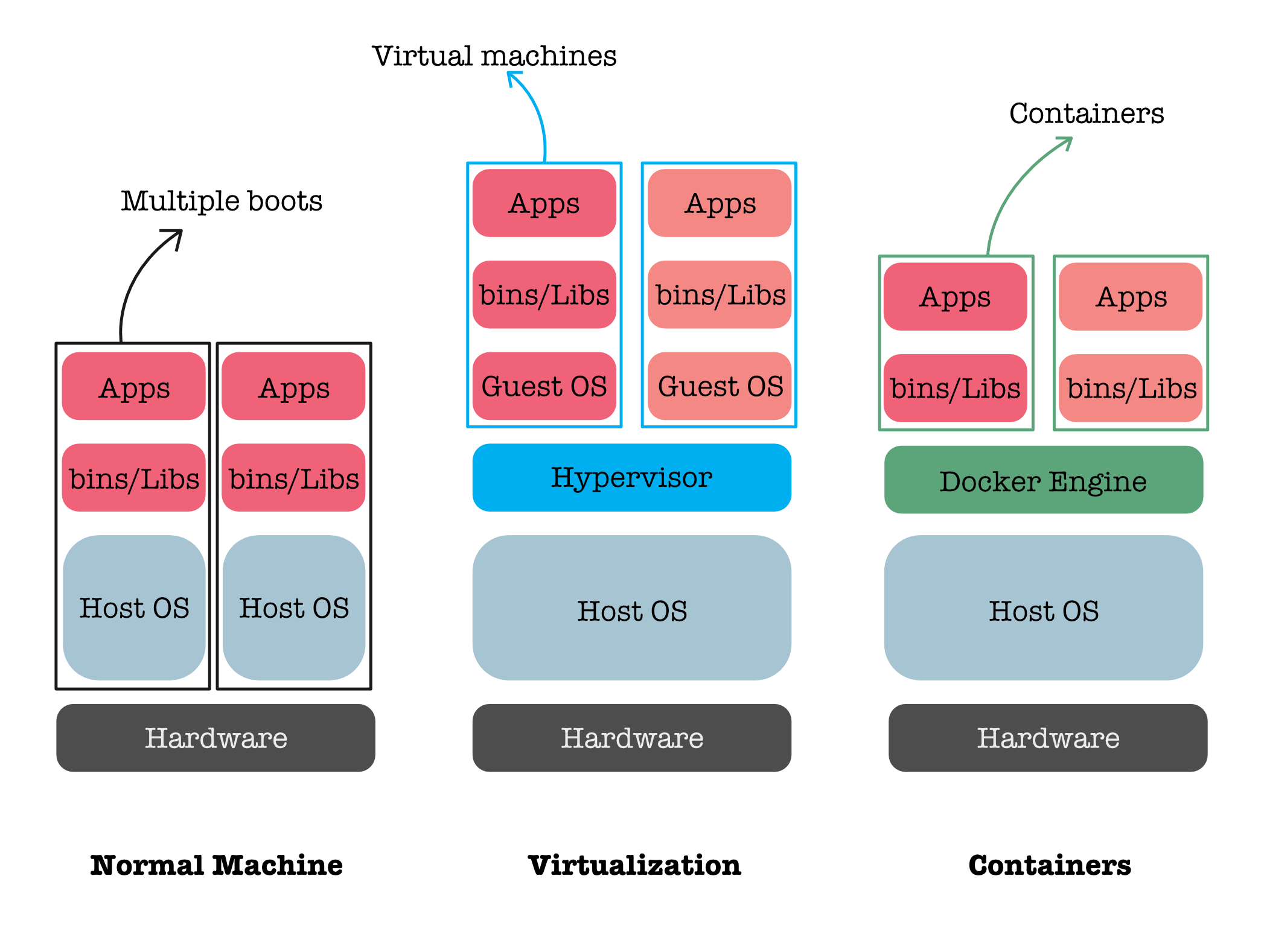 Note: “Host OS” in the picture above assumes that it is UNIX-based POSIX compliant OS. If you run Docker on Windows/Mac, it will download a Hypervisor + Guest Linux too before you can run the Docker Engine.