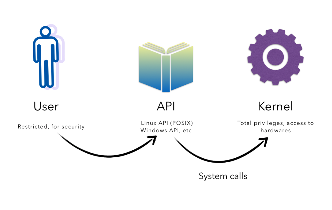 An API helps users make appropriate system calls by providing convenient wrapper functions. More often than not, we don’t need to know its detailed implementation as the API already provides convenient abstraction.