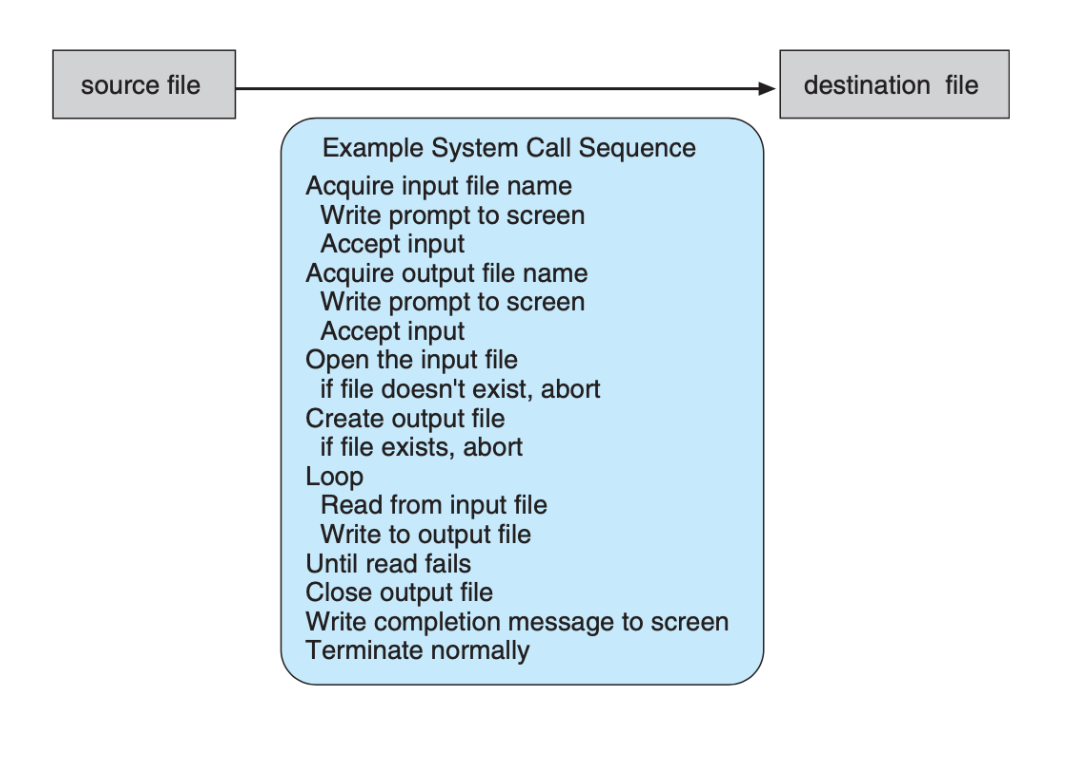 The complete documentation can be found here. The instruction sequence that is made by this CopyFile function to complete the entire copy operation is actually pretty lengthy, involving multiple system calls. In CopyFile case alone, multiple system calls are made for writing to file, opening files, obtaining file name, reading from file, termination, etc (image below taken from SGG book)