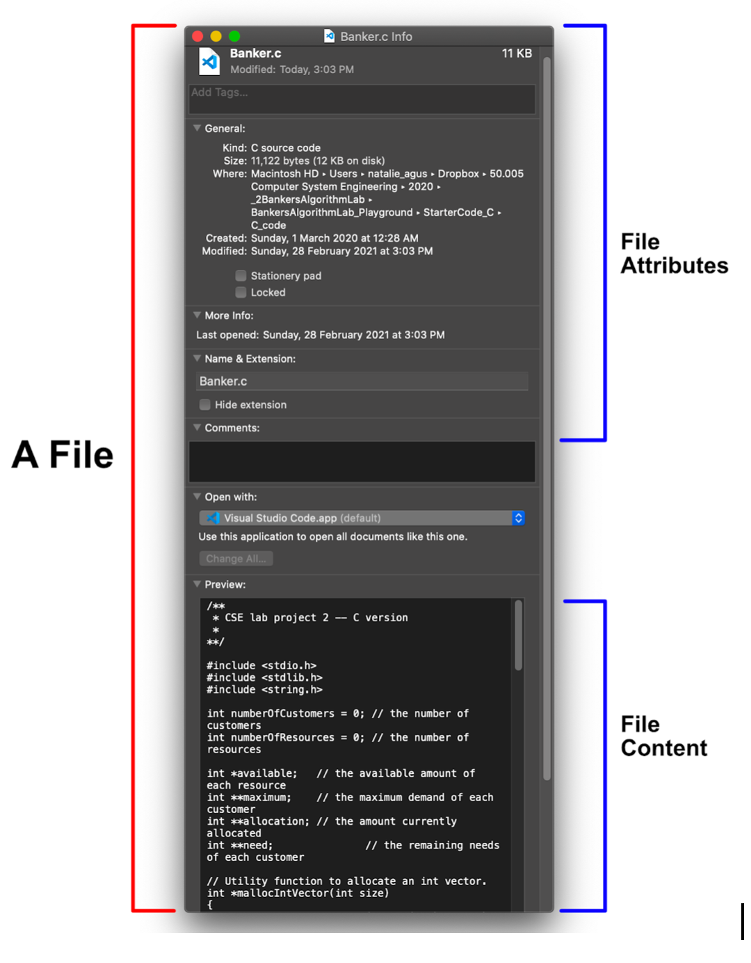 - Its content is a group of data bytes (~12KB) containing instructions to the Banker’s algorithm written in C.