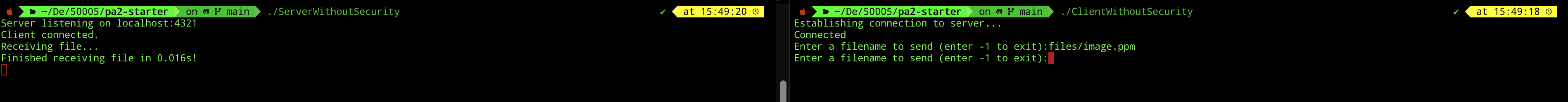 The starter code provided to you implements a simple, non-secure file transfer protocol. We will explain in detail what the protocol is. For now, letβs just ensure that everything runs normally.
