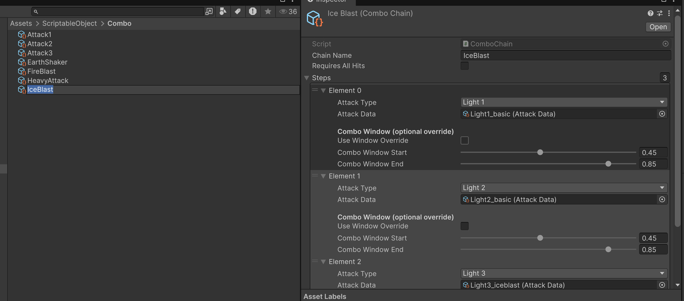 A combo system may appear simple: “press attack three times to chain hits” but under the hood, it’s an intricate network of timing, state, and data interpretation. The architecture here separates those concerns cleanly so that combat logic remains readable, extensible, and designer-friendly (can be tuned to improve feel via inspector without touching code).