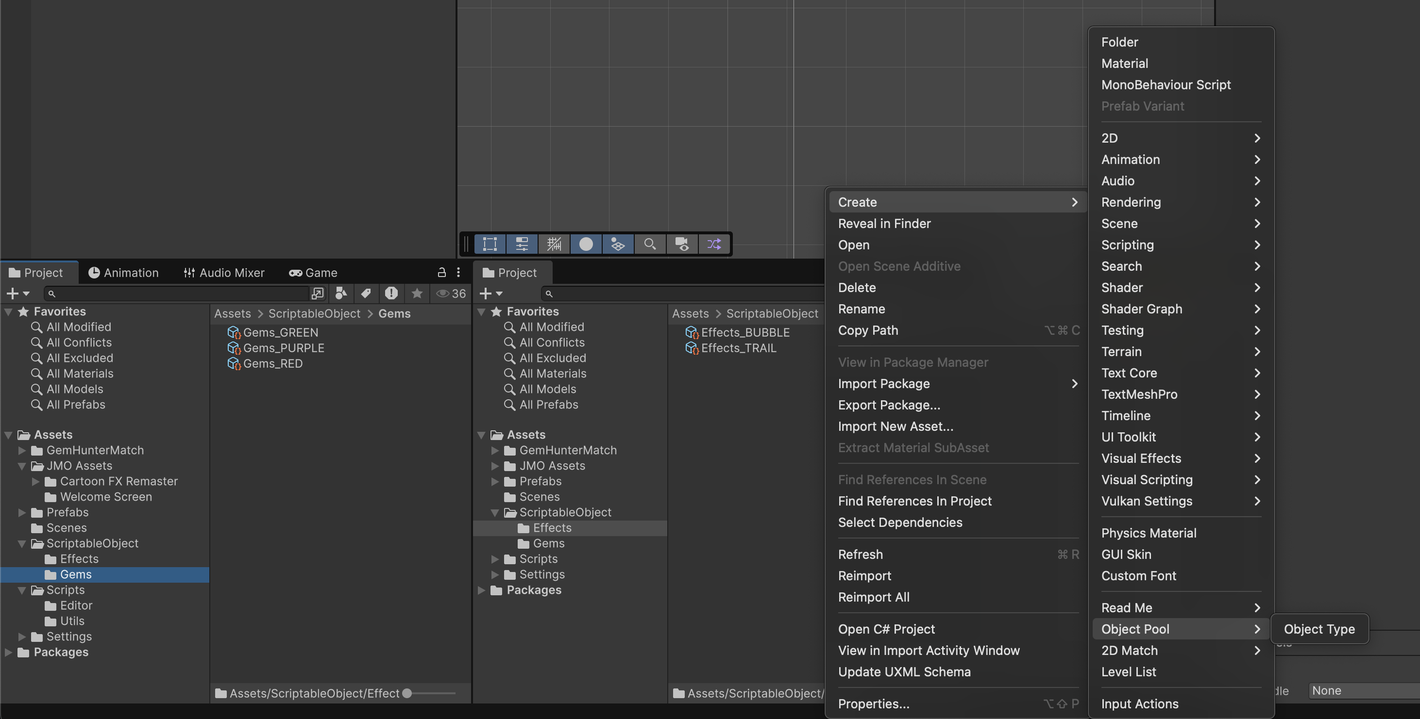 With this, you can right click in the Project window >> Object Pool >> Object Type to create any type you want as shown below: