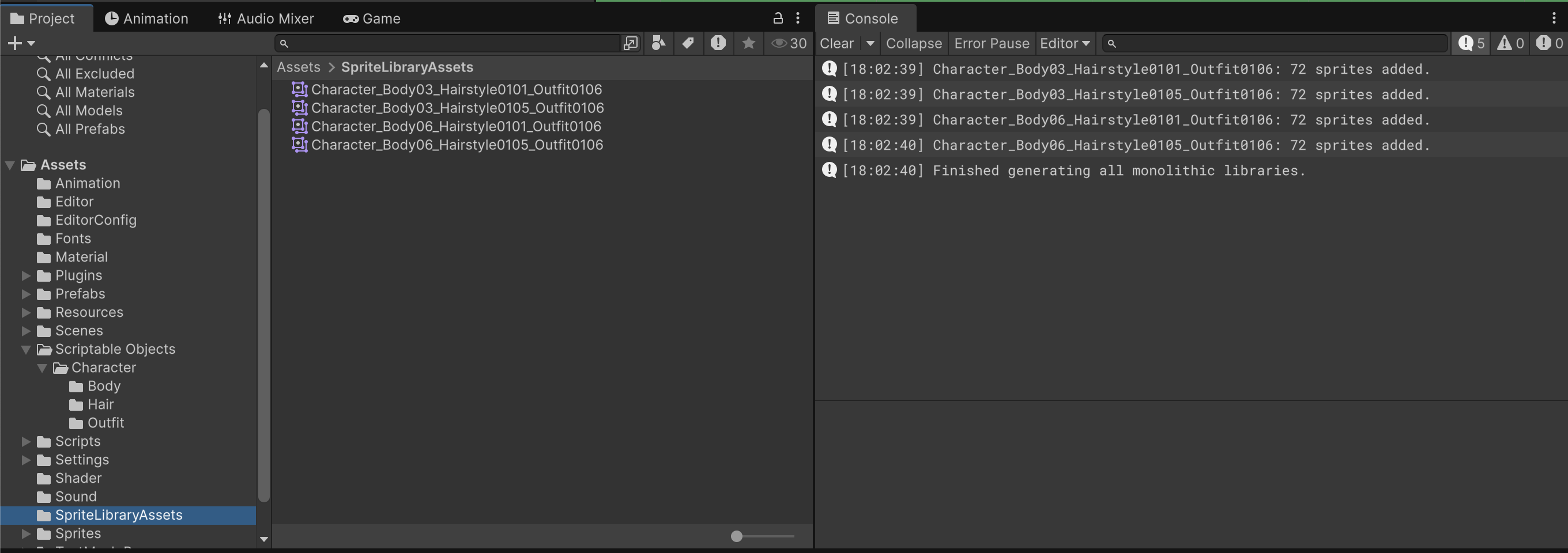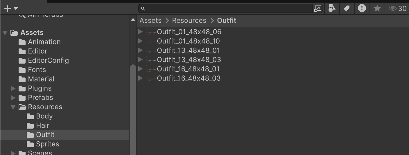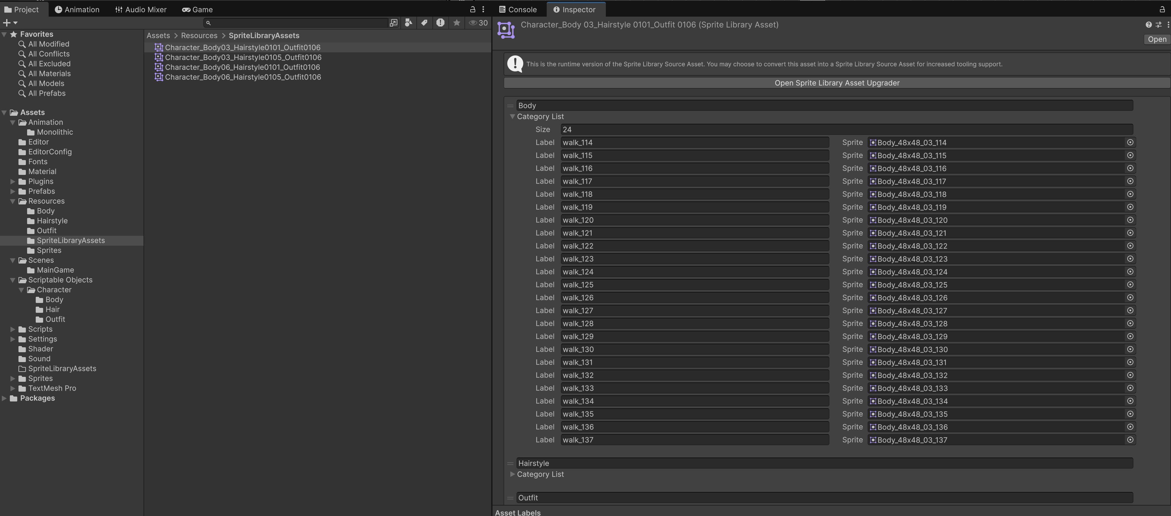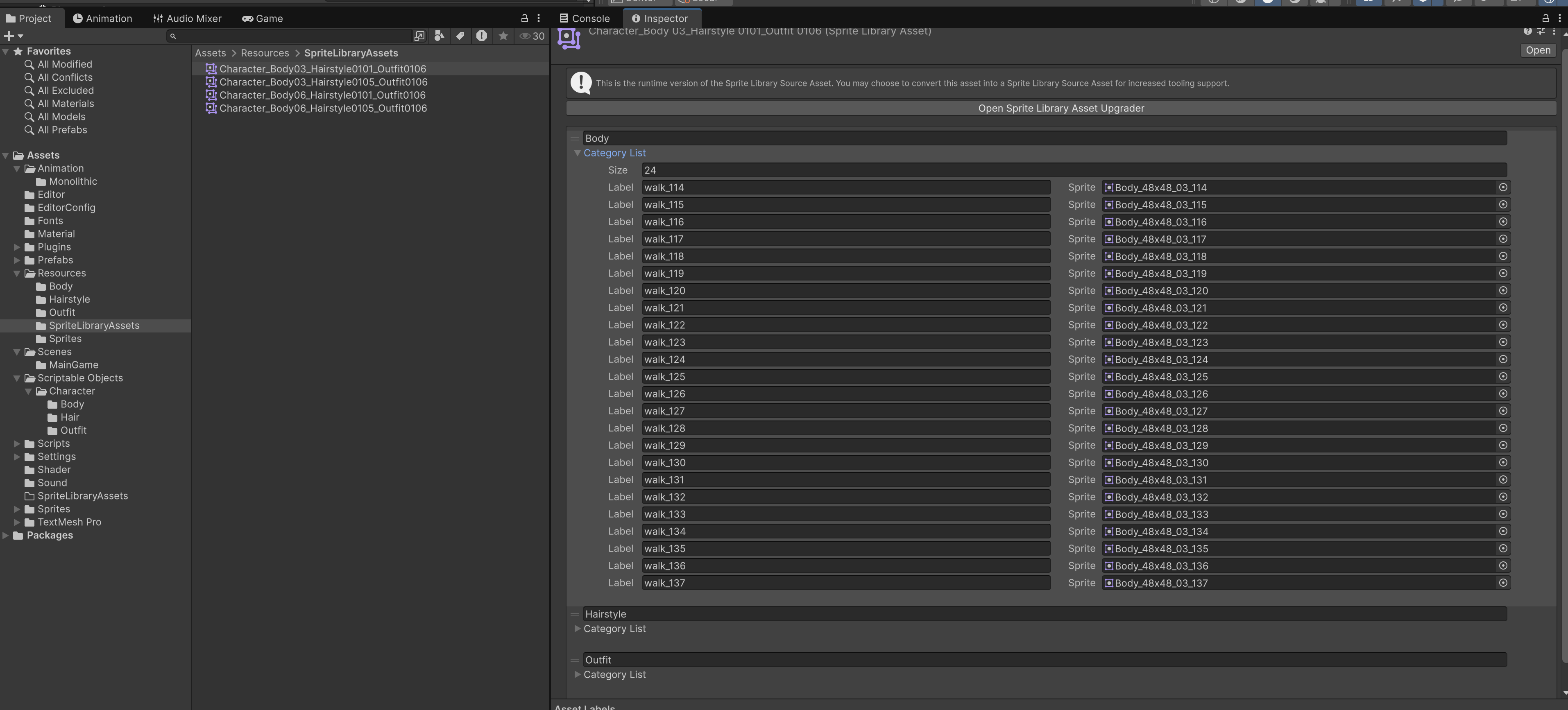 , and OutfitSpriteLibrary_02.asset