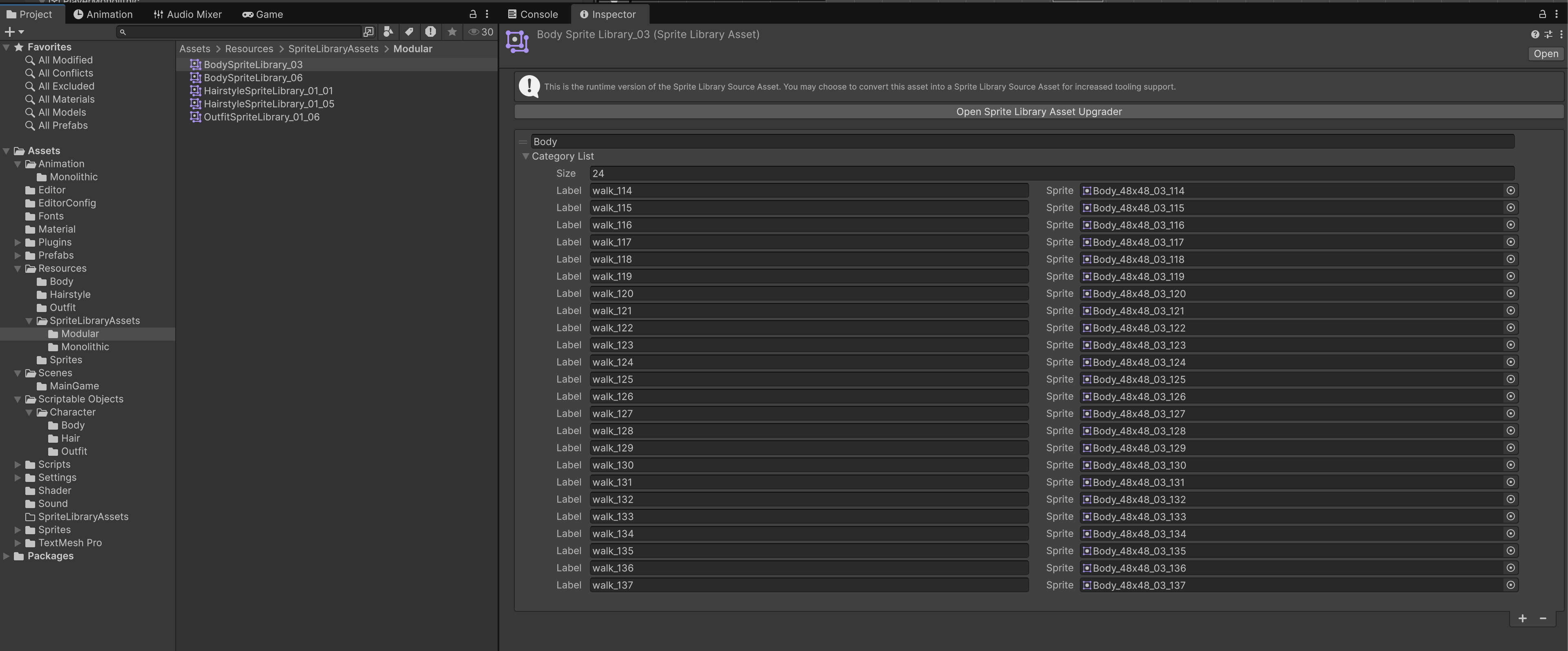 Modular Workflow (One Library Per Type of Sprite)