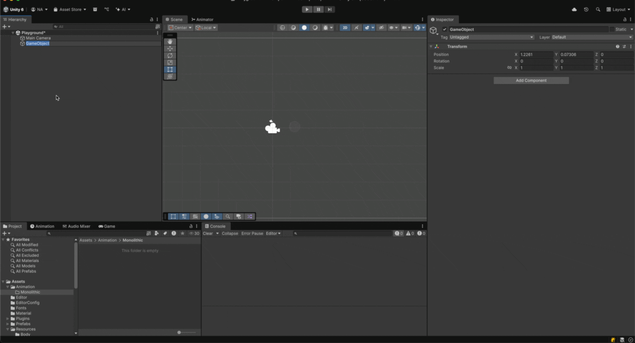 Then, create a gameobject with this structure, where Root contains an Animator and the child Object contains Renderer + Resolver + Library each. This is unlike the Monolithic structure where there's only one Library at the Root: